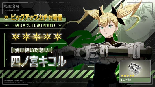 株式会社アカツキゲームス(本社:東京都品川区、代表取締役:戸塚 佑貴、株式会社アカツキ100%子会社)は、東宝株式会社(本社:東京都千代田区、代表取締役社長:松岡 宏泰)、株式会社プロダクション・アイジー(本社:東京都武蔵野市、代表取締役社長:和田 丈嗣)との共同プロジェクト『怪獣8号 THE GAME』において、このたびメインストーリー4章「ロンドン防衛作戦」の開幕にあわせて、★5キャラクター[オールマイティ]チェスター・ロックバーンおよび★5キャラクター[受け継いだ想い]四ノ宮キコルを新たに実装するとともに、待望のPC(Steam(R))版をリリースいたしました。