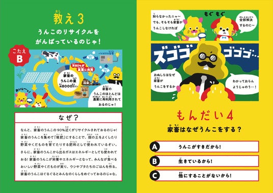 株式会社文響社(所在地:東京都港区、代表取締役社長:山本周嗣)と全国農業協同組合連合会(所在地:東京都千代田区、以下 JA全農)は、小学生が「食べ物の循環」と「環境問題」を楽しく学べる啓発冊子『うんこドリル 食べ物のつながり』を共同制作いたしました。さらに、ブラウザゲーム『うんこでぐるぐる!エコファーム』も公開し、子どもたちが遊びを通じて「資源のリサイクル」と「命のつながり」を学べる仕組みを実現しました。