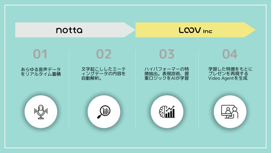 LOOV、AI議事録サービスを提供するNottaと協業し、人間に代わって最適なプレゼンを行う「Video Agent」の自動生成を加速