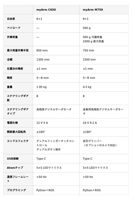 「myArm M750」は、産業用サーボモータを搭載した、多用途対応の6自由度ロボットアームです。
