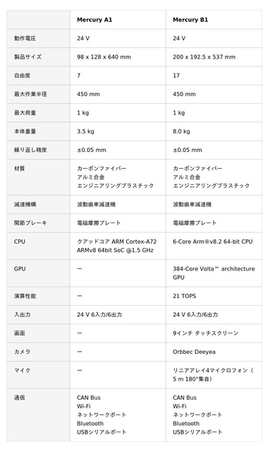 今回取り扱いを開始する、Mercury A1、Mercury B1の動作を動画で紹介しています。Mercury X1の取り扱いは今のところ未定です。