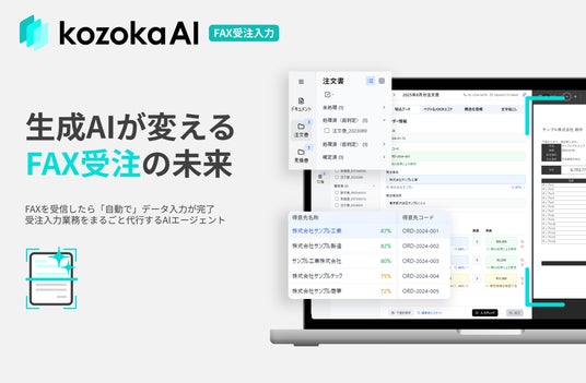 株式会社MONO-X(本社:東京都、代表取締役社長:下野皓平)は、FAX受注入力をAIエージェントで自動化する新サービス「kozokaAI - FAX受注入力」において、製造・物流・卸売業を中心とした企業向けに実証実験(PoC)参加企業の募集を2025年10月3日より開始しました。