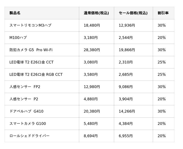 今回、10月4日(土)~6日(月)に先行セール、7日(火)~10日(金)で本番セールを予定している「Amazonプライム感謝祭」では、最新アイテムを含むAqara全34製品を最大30%OFFでお買い求めいただけます。スマートホームの中心として幅広い製品を統合できる人気の「M3ハブ」などに加えて、ハブなしで導入できる「LED電球T2」や「人感センサーFP2」「スマートカメラG100」など、スマートホーム上級者が生活を豊かにする新たなギアとしては勿論、これからスマートホーム製品に触れたい初心者の方も手軽にお試しいただけます。