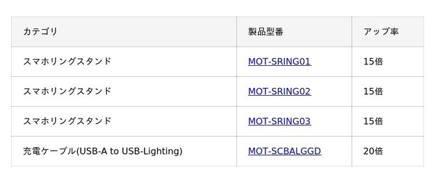 ポイント倍率アップアイテム(一部抜粋)