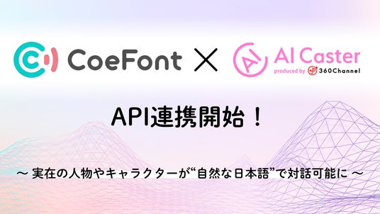 株式会社360Channel(本社:東京都港区、代表取締役社長:小松恵司)は、AI技術を活用した情報発信サービス「AI Caster(エーアイ キャスター)」と、株式会社CoeFont(本社:東京都港区、代表取締役:早川尚吾)の提供するAI音声プラットフォーム「CoeFont」とのAPI連携を開始しました。これにより、実在の人物やキャラクターのAIアバターが、自然なイントネーションや発話リズムを伴った日本語での情報発信を実現し、よりリアルな体験を可能にしました。