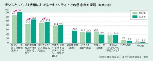 ◆「学習データからの情報漏えい」への懸念が7割超へ増加