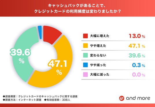 一方で、「変わらない」と回答した39.6%の層も存在しており、約4割の利用者については、キャッシュバックがあっても必ずしも利用頻度の増加につながるわけではないようです。