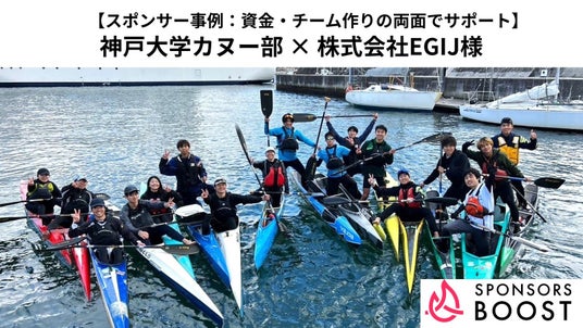 株式会社スポンサーズブースト(本社:大阪市西区、設立:2023年8月)は、企業が大学の部活に対して、小口でスポンサー出資ができるプラットフォーム「SPONSORS BOOST」を開発・販売しています。2025年4月より「SPONSORS BOOST」を利用し、神戸市に本社を置く株式会社EGIJが神戸大学カヌー部を、資金面とチーム作りでの支援を進めています。EGIJ社は資金面にプラスして、思考と行動の特性を理解するツール「エマジェネティックス(R)※」を活用し、主将と部員のコミュニケーションやチームづくりをサポート。地域企業が学生の活動を支える新しい支援の形として、効果が期待されています。