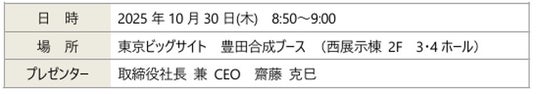今回の当社ブースでは、未来のモビリティと暮らしを支える技術について、ゴムやプラスチック分野の強みを活かした将来技術を搭載したコンセプトモデルや体験型展示などを通じて紹介します。また、日本自動車工業会による未来体験コーナー「Tokyo Future Tour」にも参画します。