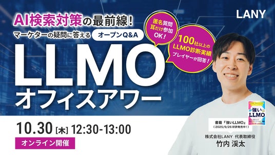 デジタルマーケティング支援を提供する株式会社LANY(東京都渋谷区、代表取締役社長:竹内渓太)は、【無料ウェビナー】AI検索対策の最前線!マーケターの疑問に答えるLLMOオフィスアワー