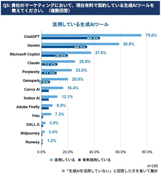生成AIツールは、ChatGPT(75.8%)とGemini(58.8%)が圧倒的なシェアを占めていることが判明しました。さらに、業務内容に応じて複数のツールを使い分けることが一般的になりつつあることも明らかになりました。