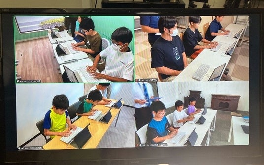 当日はオンラインで4教室をつなぎ、その様子を配信。4教室一斉に決勝戦を行ったのち、スコア上位2教室が優勝決定戦に進出しました。観戦する子どもたちも息を飲む熱戦となりました。待機中も練習を欠かさない様子に子どもたちの本気がうかがえました。惜しくも3位、4位となった教室の子どもたちは優勝決定戦で高速で正しくタイピングをする様子にくぎ付けになりながら観戦。表彰式ではお互いの雄姿を称え合いました。