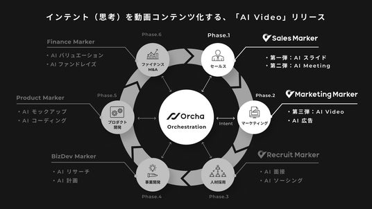 株式会社Sales Marker(本社:東京都渋谷区、代表取締役 CEO:小笠原 羽恭、以下:当社、日本語名:セールスマーカー)は、マルチAIエージェント「Orcha(オルカ)」の第三弾機能として、「AI Video」を正式にリリースしたことをお知らせいたします。