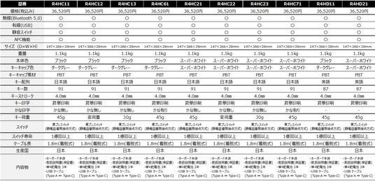 「R4キーボード」は、20機種中16機種が日本語配列、4機種が英語配列として発売します。機能については、高速入力を可能にするAPC機能を従来の4段階から22段階への対応、また、キーマクロ対応などユーザーのニーズに合わせてより細かい設定が可能となっています。