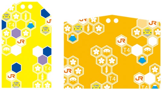『安全祈願・開運』バージョン6種の裏面デザインをリニューアルします。縁起がよいとされる亀甲文様に、富士山や、ご祈祷を行った狸谷山不動院(たぬきだにさんふどういん)の梵字、狸のイラスト、ドクターイエローモチーフのピクトグラム等を散りばめ、ポップで可愛らしいデザインとなっております。