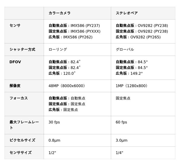 - - アクティブステレオ機能:HiMax技術により、特徴の乏しい表面での深度認識精度を向上