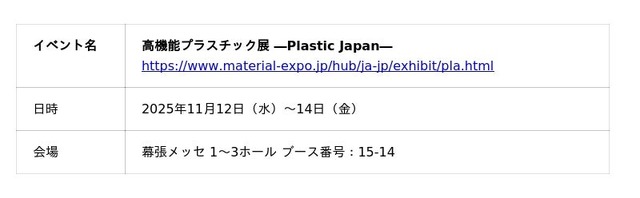 ■「高機能プラスチック展」に出展します