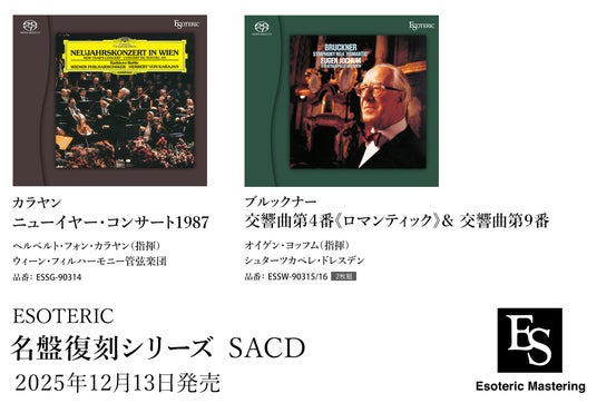 ESOTERIC(エソテリック)は、「ESOTERIC名盤復刻シリーズ」スーパーオーディオCDハイブリッド盤2作品を発売開始いたします。社内に構築した「エソテリック・マスタリング・センター」にてリマスタリングを行いました。定評の丁寧なマスタリング作業に、独自のデジタル技術を駆使して開発した「Esoteric Mastering」の音楽表現力が加わり、さらなる感動をお届け出来るスーパーオーディオCDに仕上がっています。