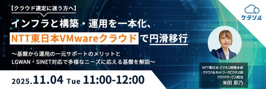 本セミナーでは、VMware環境からのクラウド移行を検討している企業に向け、基盤・構築・運用を一貫してサポートするNTT東日本の「VMwareクラウド」をご紹介します。NTT東日本のサービスは、クラウド基盤から閉域網、運用支援までを一体で提供し、各フェーズ間でのズレを解消します。これにより、移行から運用までスムーズに進行し、安心してクラウド環境を利用できるメリットを享受できます。また、LGWANやSINET対応など、特定のニーズに応じた対応も可能で、より幅広い分野での利用を支援します。