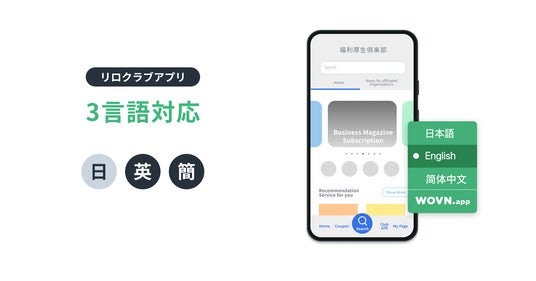 Wovn Technologies株式会社(以下 WOVN)が提供するアプリ多言語化 AI ソリューション『WOVN.app(ウォーブン・ドットアップ)』が、株式会社リロクラブ(本社:東京都新宿区、代表取締役社長 岡本 盛、以下 リロクラブ)の福利厚生サービス『福利厚生倶楽部』のモバイルアプリ『リロクラブアプリ』に導入され、日本語に加え英語・簡体字での利用が可能となりました。リロクラブは、近年増加している外国人従業員のユーザーが、日本人と同じように不自由なく利用できる福利厚生サービスを提供していきます。