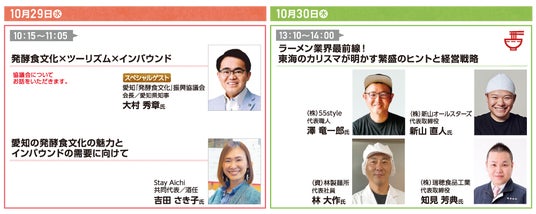 中部エリアで活躍する食のプロを迎え、「発酵」をテーマにしたセッションをはじめ、東海のラーメン業界のカリスマたちが集結する注目のセミナーなど、多彩なプログラムを実施します。さらに、本展示会のセミナーには、愛知県知事 大村 秀章 氏も登壇いたします!すべて【無料/申込不要】でご参加いただけますので、ぜひご来場ください。