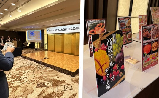 ラクラス株式会社は、このたび創業20周年を迎えるにあたり、9月30日(火)にホテルメトロポリタンエドモントにて記念祝賀会を開催いたしました。当日はサービスをご利用中のお客様80名をお招きし、社員とともににぎやかな時間を過ごしました。