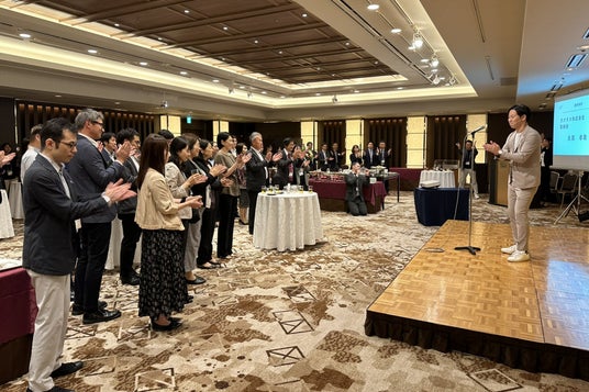 ご来賓のエーザイ株式会社 大澤知広様より温かいご祝辞を賜り、乾杯の発声で会場は一層の盛り上がりを見せました。
