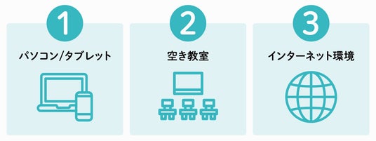 パソコンまたはタブレットと空き教室などの場所、インターネット環境があれば開設可能です(※実