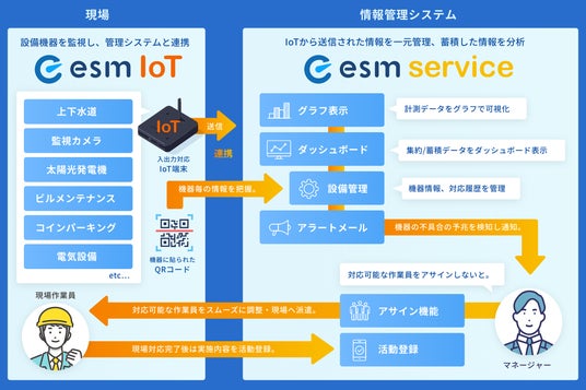 企業競争力向上のためのCRMであるesm(eセールスマネージャー)を提供するソフトブレーン株式会社(本社:東京都中央区、代表取締役社長:豊田浩文、以下「ソフトブレーン」)は、アフターサービス向け顧客管理システム「esm service」の新機能として、設備機器の稼働状況を監視し異常状態を未然に検知する機能「esm IoT」を提供開始します。