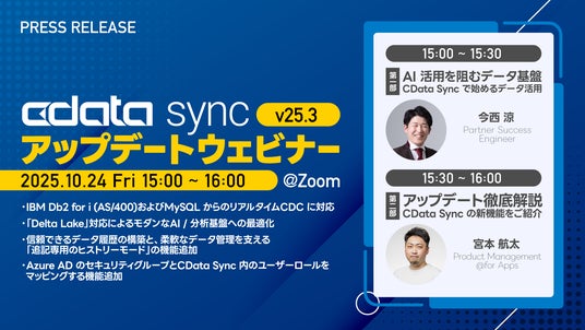 CData Sync V25.3アップデートに関する解説ウェビナーを10月24日(金)に開催