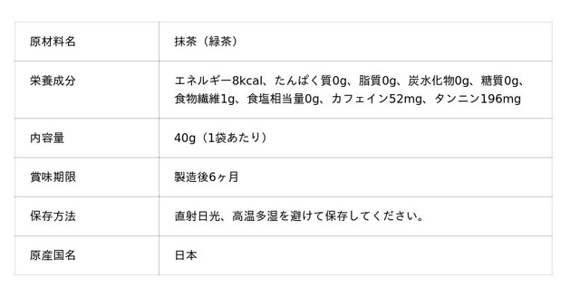 抹茶も、玉露と同じ茶葉を同じ条件で育てたものですが、収穫後の製造過程の違いによって抹茶になります。また、本製品に使用されている茶葉は春に摘み取られる一番茶だけを使用しています。