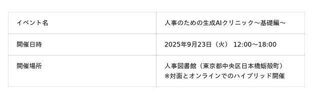 人事図書館では今後も、AIをはじめとするHRテクノロジーの活用や、人的資本経営、組織開発など、人事領域の最新かつ実践的なテーマを深掘りするイベントを継続的に開催してまいります。
