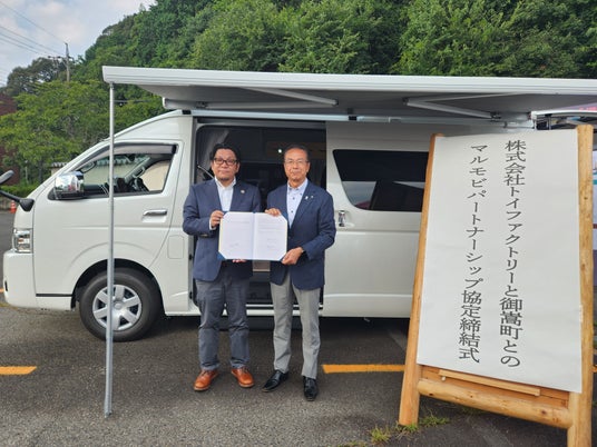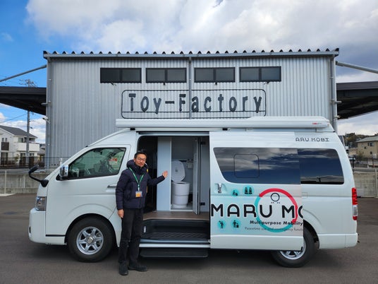 岐阜県御嵩町に新たに納入した新型車両として登場したのは、トイファクトリーがキャンピングカーの技術を応用して開発した、自治体・企業向けの多機能車両、MARU MOBI(マルモビ)。