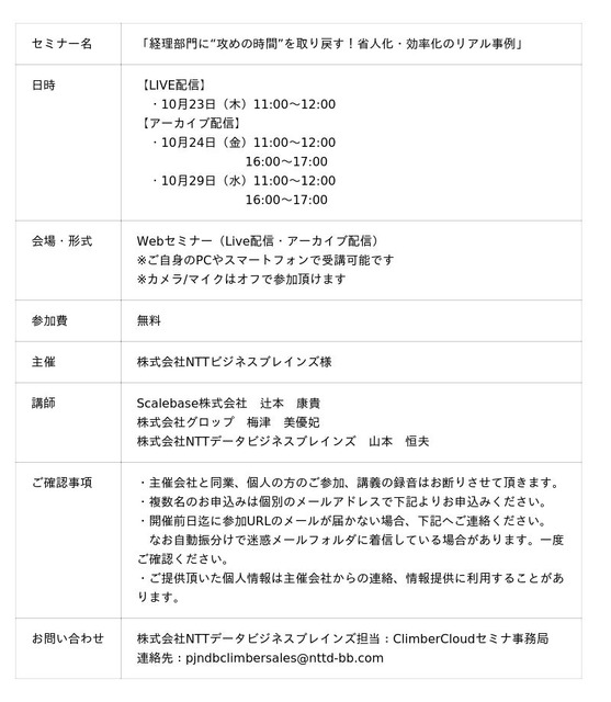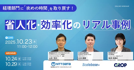 本ウェビナーでは、経理業務の省人化・効率化を実現する具体的なアプローチや最新事例を紹介し、バックオフィスの生産性を高めるヒントをお届けします。参加者の皆さまには、日常業務の負担を減らしながら、より付加価値の高い業務にシフトするための実践的な視点を持ち帰っていただけます。