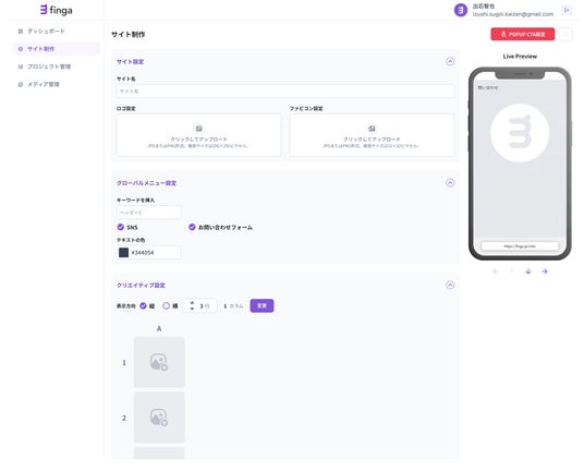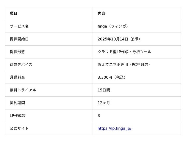 中小企業・個人事業主・デザイナー向けに、スマホ特化のスワイプ型LP(ランディングページ)を誰でも・すぐに・直感的に作成できるクラウドサービス「finga」 のβ版をリリースしました。