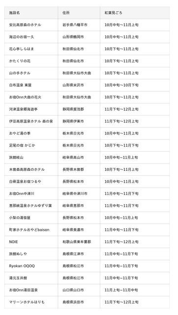 女将塾が運営する全国24施設を対象に「紅葉MAP2025」を公開しました。