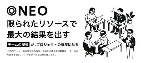 NEOは、複数人のチャットや会議の会話をリアルタイムで自動構造化し、プロジェクト推進に必要な情報を整理・共有するクラウドサービスとして、業界に先駆けて提供される革新的なAIソリューションです。