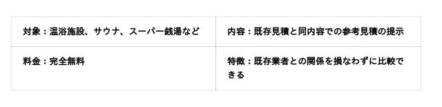サービス概要:「温浴施設専門 相見積もり無料サービス」