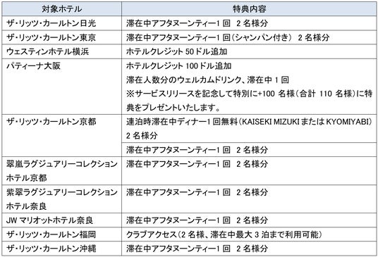 <対象ホテル・特典>