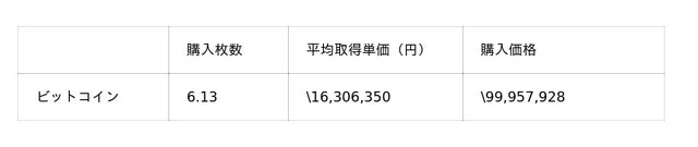 当社は、2025年3月11日付「暗号資産購入に関するお知らせ」にて開示の通り、同日開催の取締役会において、総額5億円分の暗号資産を購入する旨を決議し、2025年3月13日及び2025年4月9日付け「(開示事項の経過)暗号資産購入に関するお知らせ」にて開示の通り、累計3億円分のビットコインを購入しました。