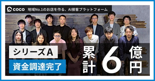 「顧客志向を当たり前に」をミッションに掲げ、店舗向けにAI接客プラットフォーム「coco」を提供する株式会社coco(本社: 東京都渋谷区、代表取締役: 高橋俊介、以下 coco)は、この度シリーズAラウンドにて総額約3億円の第三者割当増資による資金調達を実施いたしました。これにより、累計6億円超の資金調達が完了したことをお知らせいたします。