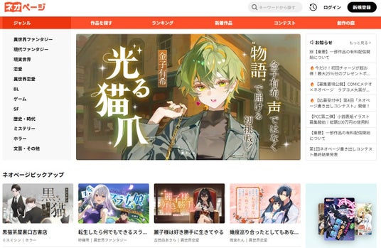 Web小説サイト「ネオページ」は、プロ・アマを問わず、あらゆる表現者が物語を発信できる創作プラットフォームです。