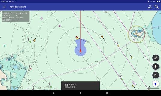 株式会社昭文社ホールディングス(本社:東京都千代田区麹町、代表取締役社長 黒田茂夫、東証コード:9475)の子会社である株式会社マップル・オン(本社:東京都千代田区二番町、代表取締役社長 花岡幸信)は、2025年10月21日より、航海支援アプリ『new pec smart(ニューペックスマート)/Android版』に、船舶の運航における安心・安全を強化し、船舶事故を未然に防ぐ「アラート機能」を追加搭載した事をお知らせいたします。