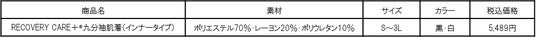 「RECOVERY CARE+(R)九分袖肌着(インナータイプ)」商品特長