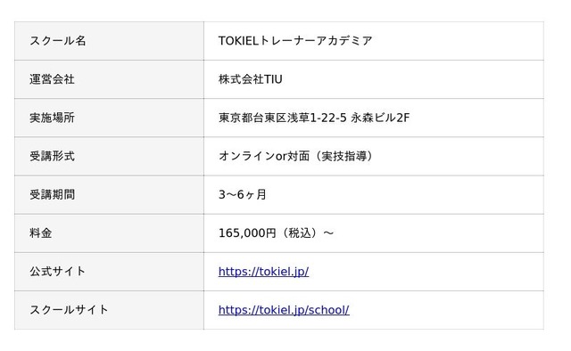パーソナルトレーニングジム「TOKIEL(トキエル)」を運営する株式会社TIU(本社:東京都台東区浅草 代表取締役 篠田拓也)は、現場で“通用する”トレーナーを育成するための新プログラム「TOKIELトレーナー養成スクール 通称:TOKIELトレーナーアカデミア」を開講しました。理学療法士監修の実践型カリキュラムにより、未経験からでも最短3ヶ月で独立、現場デビューを目指せます。