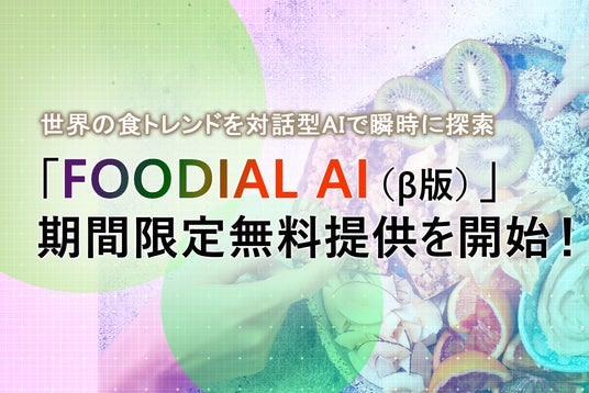海外リサーチ・マーケティング及び商品開発・PRサポート事業を行う株式会社TNC(本社:東京都渋谷区、代表取締役社長 小祝誉⼠夫)は、世界各地のフードトレンドを毎月レポートする「FOODIAL(フーディアル)」の10年分の蓄積情報を活用した対話型AIサービス「FOODIAL AI(β版)」の期間限定の無料提供を本日より開始します。本サービスは、食品・飲料メーカーの商品開発やマーケティング担当者が抱える「効率的な情報収集」や「新しいアイデアの創出」といった課題を解決し、業務効率化を支援します。