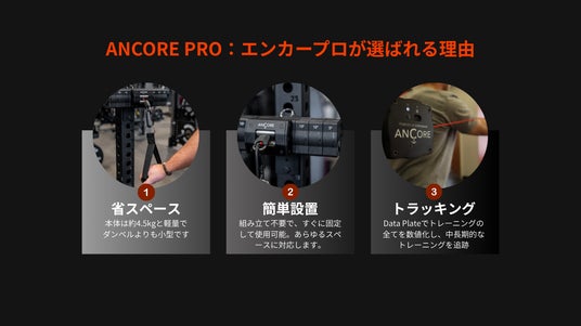 ANCORE PROはコンパクトな設置面積で220種類以上のエクササイズを実現可能。軽量なため、遠征先への持ち運びも問題ありません。さらに、Data plateと組み合わせることで速度、エキセントリック局面、パワー、レップ数、動作時間をリアルタイムで追跡!従来のケーブルトレーニングが進化します。