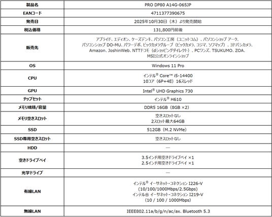 https://jp.msi.com/Business-Productivity-PC/PRO-DP80-A14G-065JP