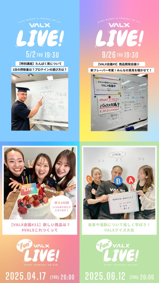 過去の配信は、VALXメンバーズストアや公式Instagramのアーカイブでも視聴可能ですので、ぜひご覧ください。