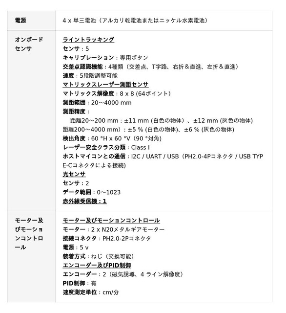 - 事前キャリブレーション済のライントラッキングアルゴリズム、生徒が衝突させても壊れにくいモーター、すぐに使える使いやすさにより、スムーズな導入が可能